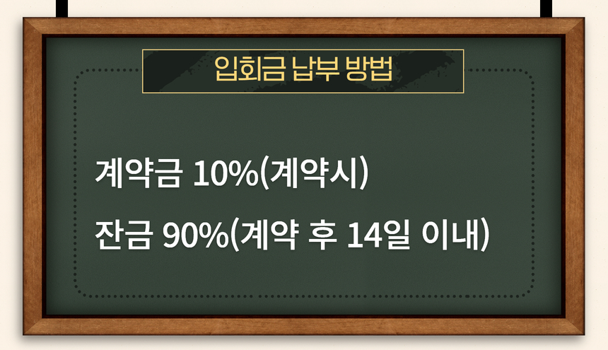 입회금 납부방법은 계약 시 10%, 계약 후 14일 이내 90% 잔금을 납부하시면 됩니다.